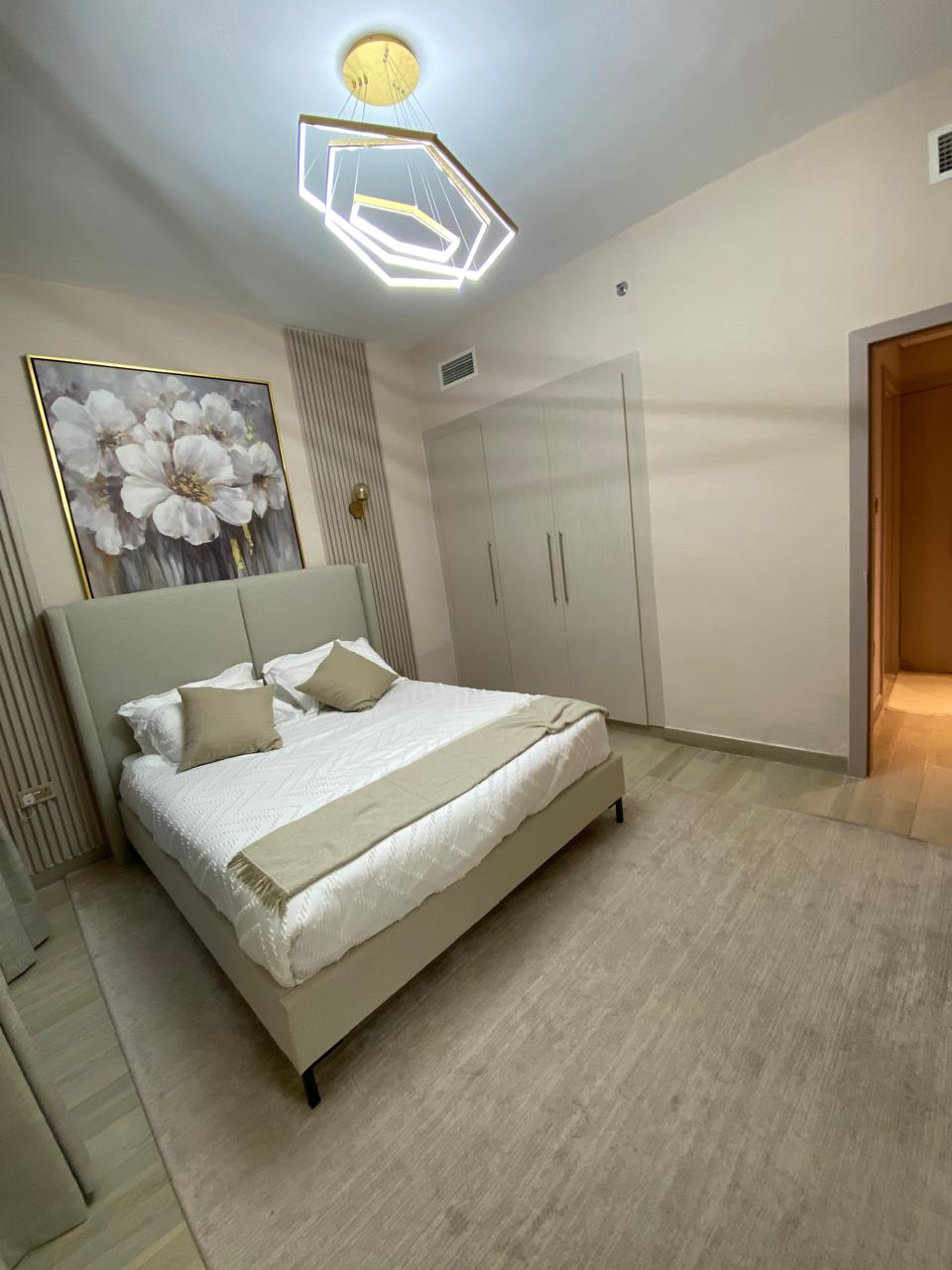 غرفة نوم واسعة مع خزائن مدمجة